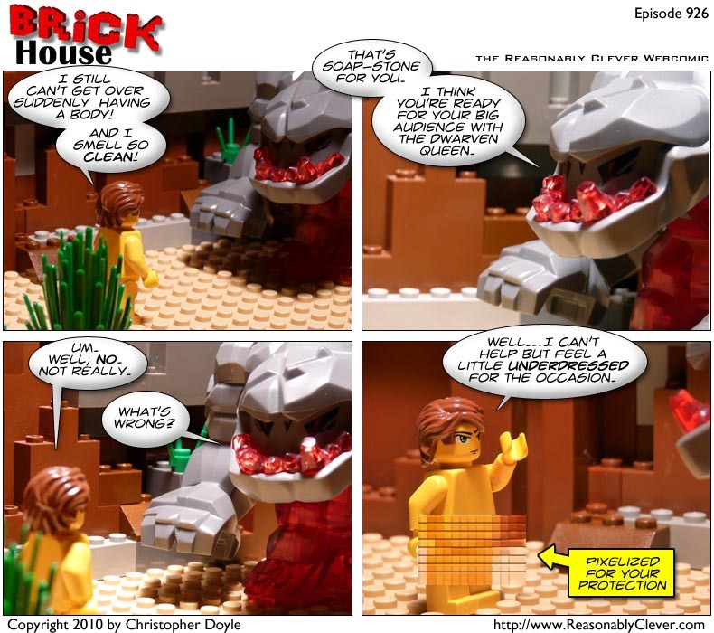 While at the TwinLUG meeting a couple of weekends ago, I heard that LEGO no longer produces the mini-fig hip part in yellow, considering it “nudity.” Not sure if that’s true or not, it seems like it’d be fairly harmless in any of the licensed lines where they’re using flesh-toned minis.