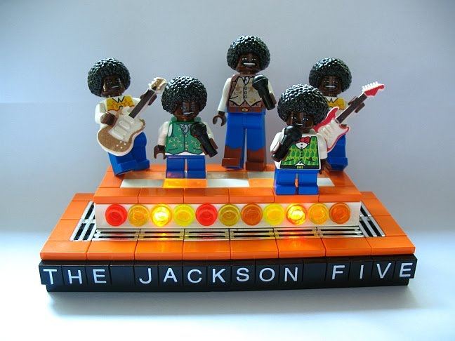 Customizer Akunthita has built this mini vignette featuring the Jackson Five. They've utilized three different sizes of legs (short, regular, and Woody) to achieve the brother's varying heights. Add some painted Collectible Minifigure Clown 'fros, Amazing Armory guitars, BrickForge mics, and voila! You have a LEGO tribute to a Motown super group.