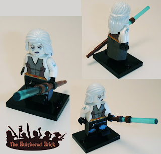 EclipseGrafx has created a custom version of Jarael, an Arkanian female from the expanded Star Wars universe.Armed here with her "shockstaff", Eclipse has used custom decals and painted parts to recreate this Old Republic character in minifigure form.