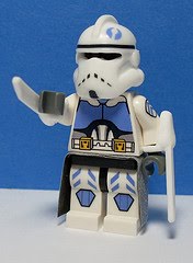 Now Tyler hasn't cornered the market on Stormtrooper customization. There's another customizer, MinifigMaker, who's also pimpin out the clones. As you can see on their Flickr stream, MM doesn't just work with troopers, but when they do the results are quite nice. I like how they explore different specializations like scuba, assassin, and jet troopers. They also play with the helmet shapes, keeping them familiar but different all the same.The whole idea reminds me of the vinyl Munny figures, blank figures that can be painted and customized in a variety of ways. Just imagine doing it at a fraction of the scale.