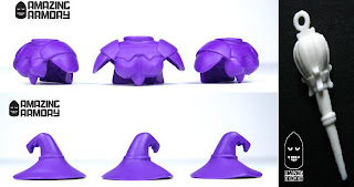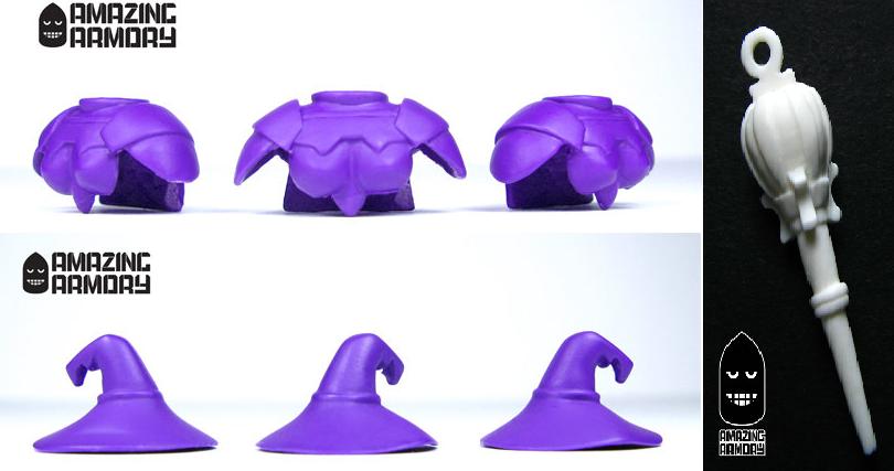 New product alert at the Amazing Armory store on BrickLink. They've just uploaded three colors of female torso armor (purple, orange, and pink), a wizards hat in purple, and a Queen's mace in white. Pictures are below.