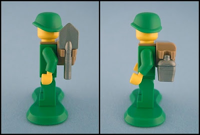 Today’s product review focuses on several new items from custom house BrickForge that we are classifying under a common theme of ‘soldiers gear’. Although we compare many of the items here to items used by military groups during World War II, they can have a wide variety of uses and purposes no matter what theme or subject area. The items under review today include the Backpack,Ammo Pouches, Canteen, Shovel, and Grease Gun.