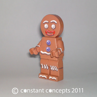 Late last year I cam across customizer Constant Concepts. They often take a minifig and paint the entire thing to great effect. This custom of 'Gingy' from Shrek is no exception. It's fantastic right down to the gumdrop buttons.