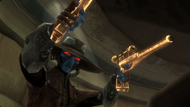 Cad Bane is composed of five parts: his unique, broad rim hat, blue head, cybernetic breathing tubes, torso, and legs.
