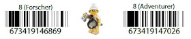 The following are the secondary bar codes that can be found on the back of each bag which indicates the figure inside. The EU bar codes are shown on the left and the US bar codes are shown on the right. These bar codes come courtesy of Grogall. You can find a single pdf containing all bar codes here.
