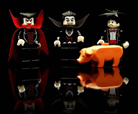 Joriel Jimenez gives us the evolution of the LEGO minifigure vampire, from the studio original to the Series 2 Collectible version. He's even crafted an 'Emo' variant from the Series 2 Mime. Not sure about what the pig is doing there, but Edward's looking a little hungry. Too bad Bill and Eric couldn't make it to the party...