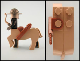 The second issue pertains to accessory use. I found that some of the longer accessories typically designed for the back of a minifigure (i.e. quivers), would not fit because of the placement of the Centaur body. This is fixed by placing the quiver on the stud attachments found on the back of the Centaur instead (as shown above). One thing to keep in mind is that you may only be able to place accessories, like the quiver, on one side only unless you modify the piece. There is a slight overlap with the two quivers I had that prevented both 'neck braces' from lying flush against the Centaur body. This is easily fixed with a little sand paper, however.