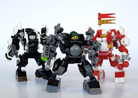 Brickmania will be selling custom mecha/hardsuit kits based on a design by Legend Bricks' John Ho, starting this weekend at The Memphis Comic and Fantasy Convention. The middle design is John's, while Dan came up with the Jester and Mime concepts. No word on when these might appear at the Brickmania online store, but if you are in Memphis this weekend be sure to check them out.