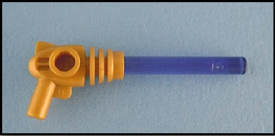 The accessory that comes with this figure is a gold variant of the zap gun that came with the Series 1 Spaceman. This would be a new color for this part. There's also a 3L trans-purple bar that represents the laser beam.