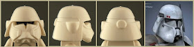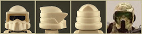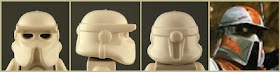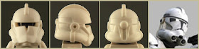 The first item is the Commander Helmet which is inspired by helmets worn by Clone Commanders and Troopers in Phase II armor. The Phase II armor became the norm in the Galactic Republic as the Kaminoans became more accustomed to human anatomy. This upgraded system was the next step in the evolution towards the Galactic Empire’s Stormtroopers. The item is shown here in white with nice details including a cut out for the eyes and extending down the bridge of the nose. As you can see, there are holes on the side of the helmet to accommodate visors (more on that later).