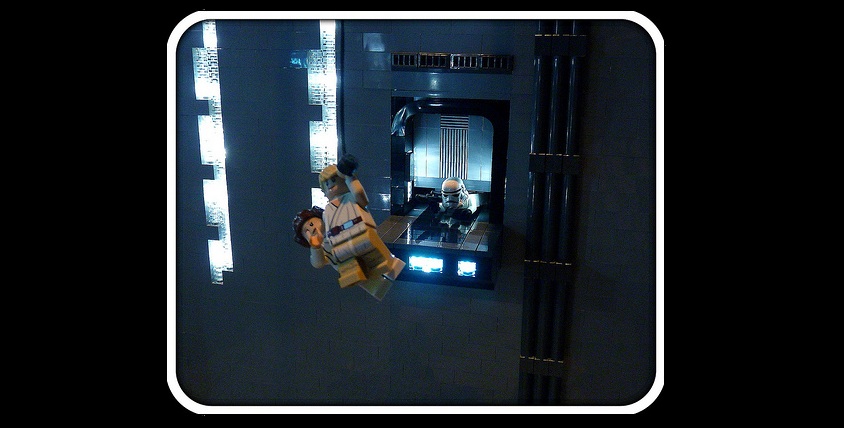 This huge set is lit brilliantly and captures this scene from New Hope in all its LEGO-fied glory. There are several scenes filmed here with this same set, including a humorous shot (quickly becoming a standard for Mark).