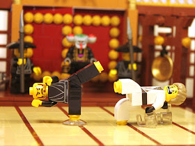 Posing...this gets a post for the posing of the figs alone. Great combos of minfig elements and brick-built parts. Oh, and it doesn't hurt that this marital arts tourney is overseen by a Squidman grand master...
