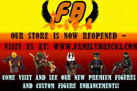 Family Bricks is back in business! After busy month, the store has reopened with new minifigures and hand-made custom accessories. Many of the base customs retail for around $20 USD, while the premiums are, well, a bit more premium priced.