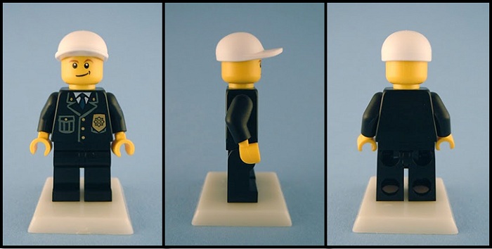 The second police figure is similar in that many of the individual parts have appeared with previous figs. The white cap with the short brim style is a relatively new color for this part, first appearing in sets in 2010.