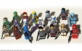 With all of the Hazel Fantasy Halo customs hitting the net, it's sometimes easy to forget that there are more ways than one to skin a SPARTAN. Justin (Saber Scorpion) has created several variants using traditional LEGO elements and decals. It looks like some effort has been put into these, there are even decals for the visors!