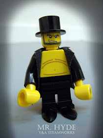 V&A Steamworks teases us with this great custom version of Mr. Hyde using brick enhanced legs and the arms of a LEGO LED flashlight. The proportions are spot on and who can resist that torso from the Series 3 Sumo Wrestler?
