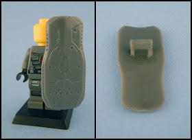The Cyborg Shield (sold separately) can be paired with Cyborg Armor set or used for other builds. The shield is held via a handle on the back of the shield (shown above). The connection was good within the fig's hand and there were no connection issues. As with the Cyborg Armor set, the piece is molded in ABS plastic and comes nicely detailed.
