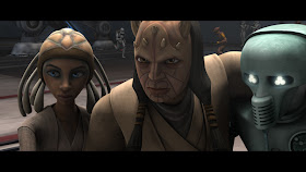 As with Quinlan Vos, this character is modeled after his incarnation on the Clone Wars TV series. The facial print is quite good, but the hair piece is a bit 'odd'. I'd be curious to know why they decided to mold Eeth's horns but not Sugi, who was also a Zabrak.