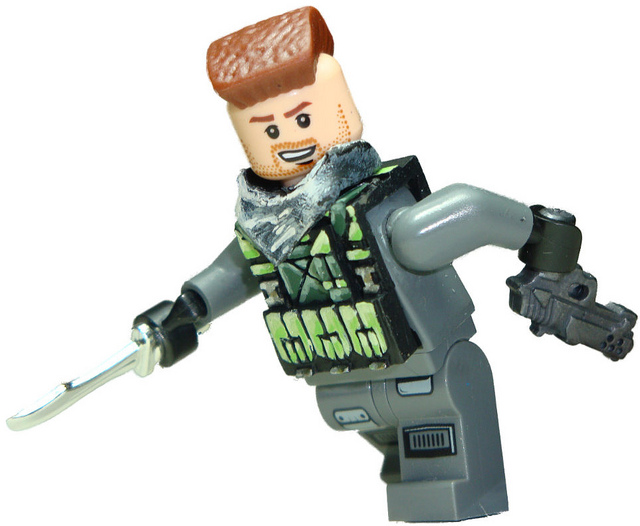 The custom figure is courtesy of The Knight. The knife, gun, and vest are Hazel Fantasy, and the mohawk and bayonet are BrickForge. You can see more on Pedro's Flickr stream.