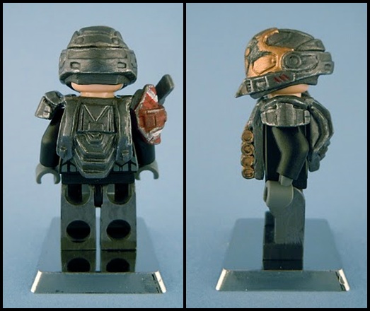 The first subject of the new format is a custom Emile minifigure that Andrew Pescovitz (Pecovam) had sent to me. The helmet and armor are produced by Hazel Tam and sold through United Armory. As you can see from the side-by-side picture above, Andrew has added Emile's signature skull design to the EVA helmet and a fantastic paint job. We start our interview here...